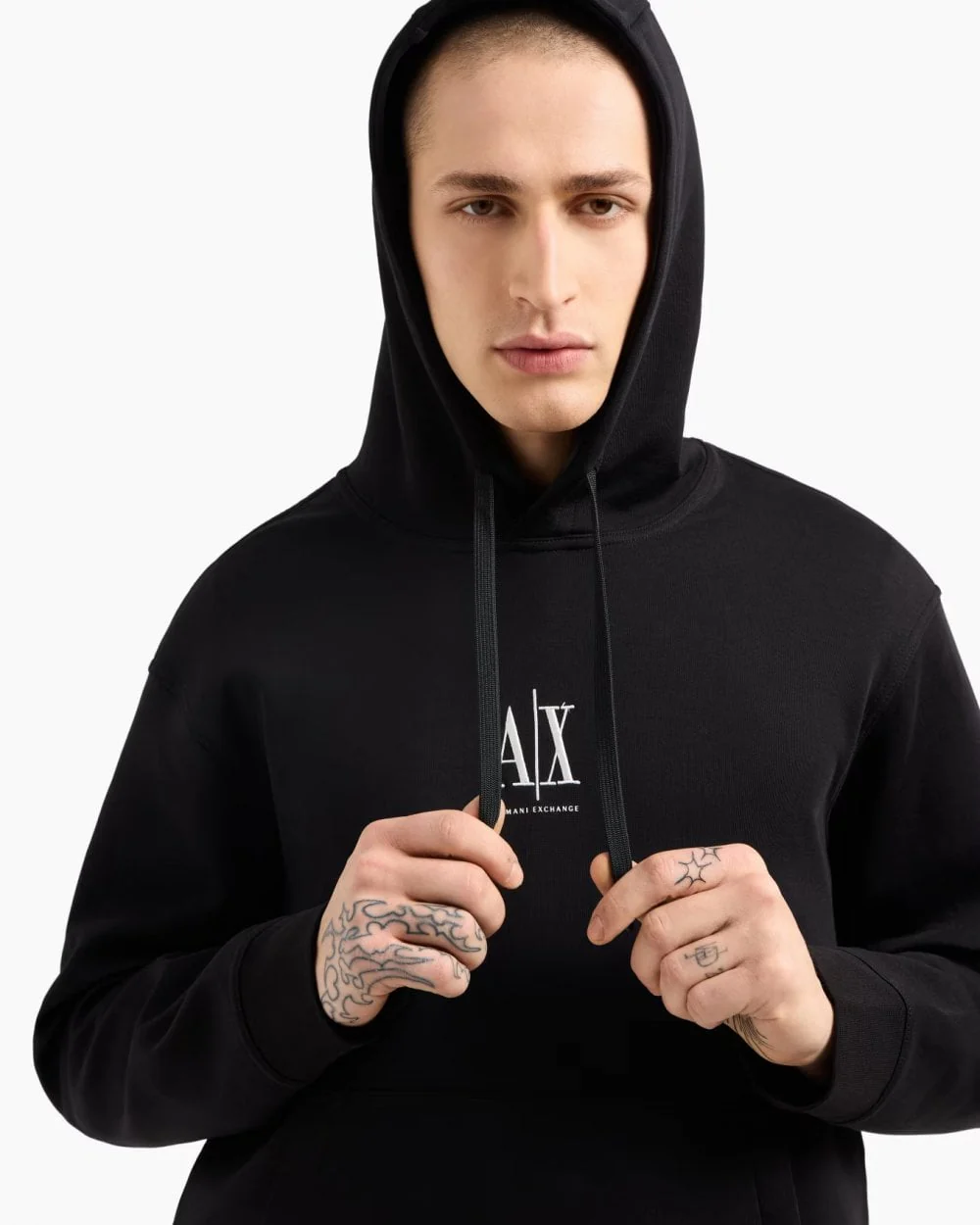 Armani Exchange Mens Embroidered A|X Centre Logo Pullover Hoodie - Black UC001