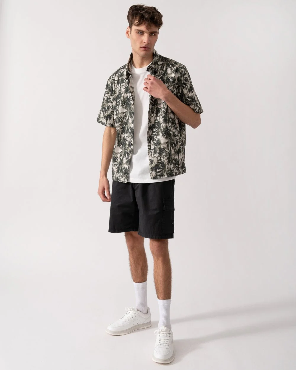 This regular-fit, palm-print shirt with short sleeves offers a fresh, modern look. The classic collar adds a touch of elegance, making it ideal for summer days. Perfect to pair with jeans or casual trousers for a relaxed yet stylish outfit.