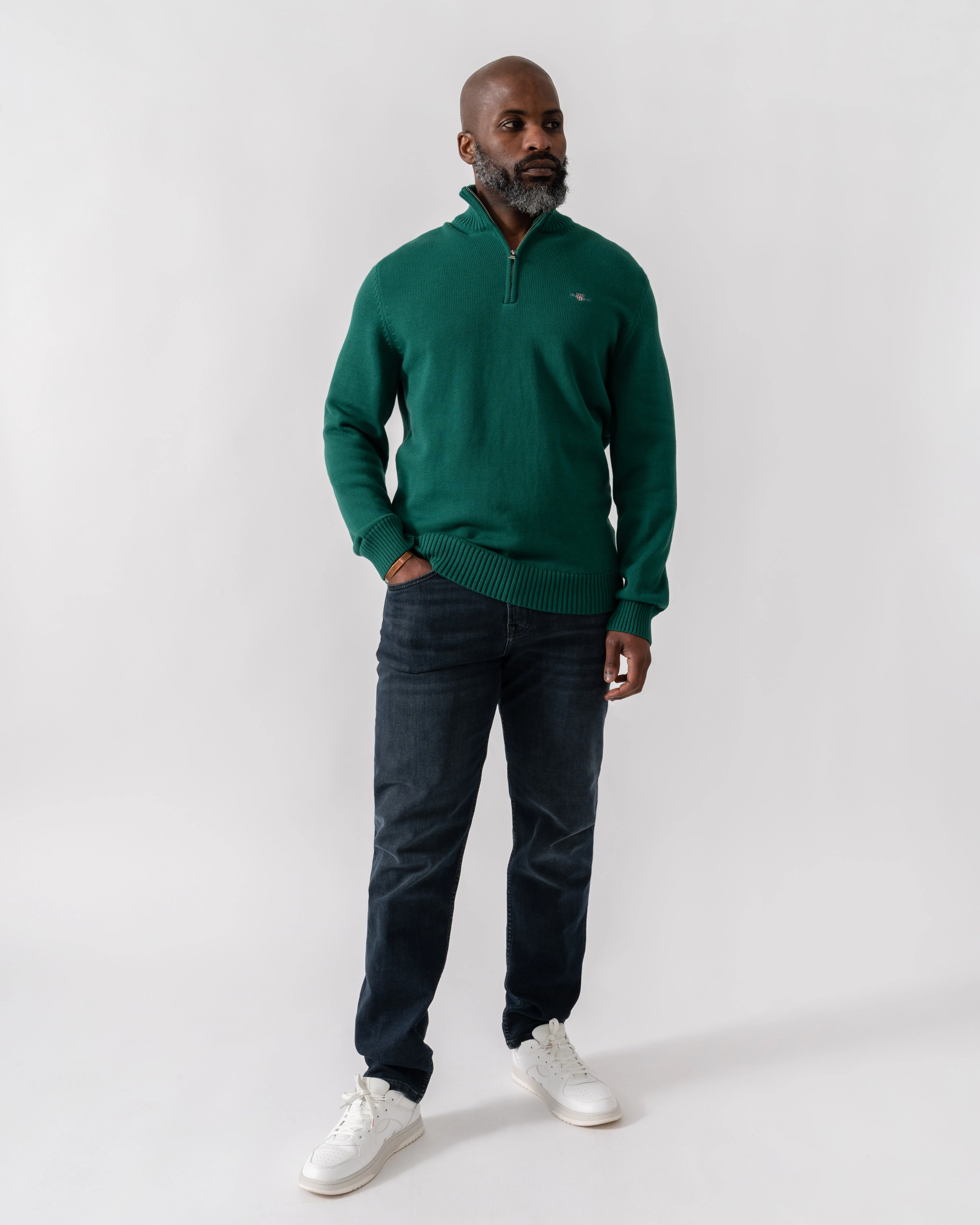 GANT Mens Casual Cotton Half Zip Jumper - 373 Deep Forest Green